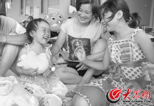特派記者 湯序民 報道 5月28日,在綿陽市九洲體育館災民安置點,來自北川縣任家坪、10歲的劉思雨(右一)和3歲的劉影(右三)玩得十分開心。在全國人民的全力支援下,在眾多好心人的幫助下,受災群眾逐漸走出心理陰影,孩子們也露出久違的笑容。人們以更堅強的的心態面對一切,重建家園。