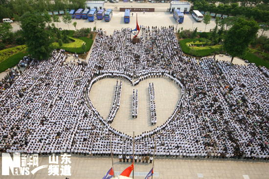萬名師生圍成"心形"默哀