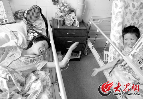 □記者 房賢剛 通訊員 蔣強(qiáng) 報(bào)道 6月1日,在濟(jì)南市中心醫(yī)院外科病房里,盡管身體的疼痛還在折磨著文靜(左)和羅穎,但她們還是興奮地相互擊掌慶賀自己的節(jié)日。當(dāng)日,9名來自四川災(zāi)區(qū)的孩子還與醫(yī)護(hù)人員、志愿者一起聯(lián)歡,共度“六一”兒童節(jié)。