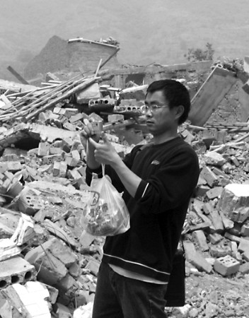 劉海鵬在青川縣抗震救災(zāi)指揮部寫稿。