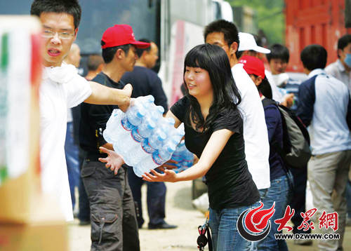 在災區,處處都可見到這樣的志愿者無私奉獻的場景(房賢剛攝)。