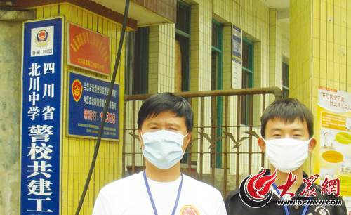 來自濟陽的志愿者郭振平父子在北川中學。