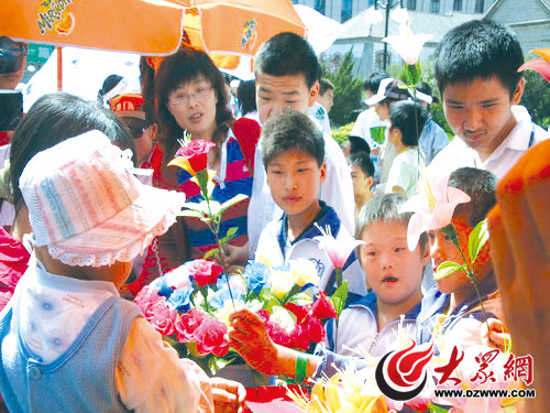 當智障兒童真誠的眼神出現在他們手制的鮮艷絹花后邊,為一個遙遠的地方義賣時,5月30日下午的洪樓廣場不能不令人動容。當日,由山東省聾人協會、省智力殘疾人及親友協會、省精神殘疾人及親友協會、山東建筑大學法政學院共同舉辦“山東省殘疾人支援北川賑災義賣”,100多名聾人、智力殘疾人義賣自創書畫和自制手工制品,籌得的8000多元將通過省殘疾人福利基金會發往災區,用于幫助北川受災的殘疾人。 5月28日,天橋區婦聯舉辦“百名春蕾女童救助行動”捐贈儀式,34300元捐款資助了208名“春蕾女童”。當場,受助女童北坦小學的閆琳琳、省體育學校的李夢瑤各拿出100元救助金捐給災區的兒童。 槐蔭區中大槐樹街道裕園社區78歲的宋興文大爺,沒有退休金,每月靠300元的低保金生活。但是,聽說居委會設立了捐款處,老人送來了100元,相當于生活費的1/3。