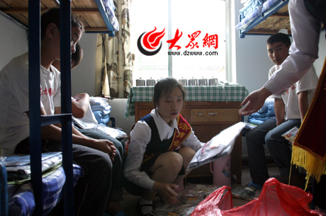 吃完早餐,孩子們來到了自己的“新家”。8個人的房間,既干凈又整潔。床上擺放了嶄新的用品。據學校負責人介紹,他們為每一個學生配備了床上用品、日常用品、服裝、文具等四大類49種物品。記者注意到,光鞋就有涼鞋、拖鞋、運動鞋三種,連風油精、紅領巾等也在發放之列。 雖然坐了36個小時的火車,但孩子們沒有疲憊之意,一舉一動傳遞著興奮和激動。“一到濟南站,就看到很多老師和學生迎接我們,非常熱情,很激動,挺高興的”六年級四班的劉坤說。“很高興,很幸福,因為我們又可以上學了”,12歲的唐輝堯高興之情溢于言表。