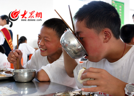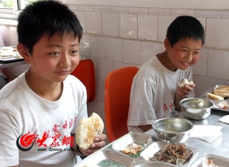 記者來到食堂時(shí),小朋友們已經(jīng)開始吃上了第一頓早餐,有說有笑。“第一次喝小米粥,好喝”,六年級(jí)六班的劉露難掩興奮。饅頭、包子、小米粥,這些北方人習(xí)以為常的飯食對(duì)來自“天府之國”的小朋友們來說,可有些新鮮,不過,記者和很多小朋友聊天時(shí)發(fā)現(xiàn),他們都很喜歡,他們的老師也說“小米粥很香”。學(xué)校相關(guān)負(fù)責(zé)人告訴記者,他們已經(jīng)請(qǐng)了川菜廚師過來為孩子們做飯。