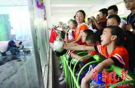雖然家鄉(xiāng)在四川,但18名來自災(zāi)區(qū)的小朋友大多數(shù)是第一次見到大熊貓。5月31日,本報“和災(zāi)區(qū)孩子一起過‘六一’”活動中,災(zāi)區(qū)小朋友們來到濟(jì)南動物園,見到了自己的“老鄉(xiāng)”——來自四川臥龍的17歲大熊貓泉泉。