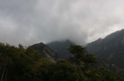 黃山之上,風景絢麗多姿。山頂濃霧彌漫,幾步之外都不見人影,山下遠山近樹卻如此之清晰。 |