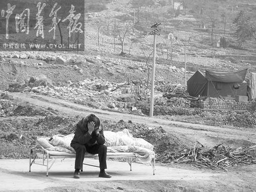 受災群眾將簡易床搬出帳篷,享受難得的冬日暖陽,地震和泥石流,對北川生態的破壞和對人們心理的影響,短時間內很難完全恢復。