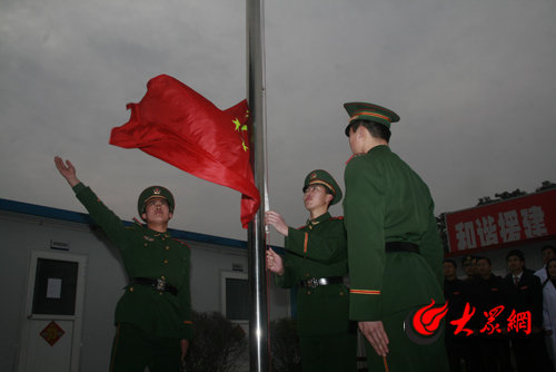 大眾網(wǎng)訊 特派記者 陳宏發(fā) 早上8點(diǎn)半,當(dāng)霧蒙蒙的天透出第一絲曙光的時(shí)候,山東援建北川總指揮部全體成員舉行了簡(jiǎn)單而隆重的升國旗儀式。