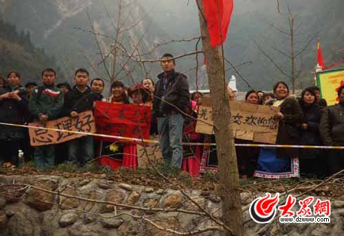 大眾網北川訊特派記者 曲濤 陳宏發)1月24日,溫家寶總理來到吉娜羌寨,當地群眾自發制作標語歡迎溫總理。