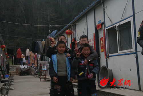 板房區(qū)生活基本沒有問題,廚房、浴室、理發(fā)店、小超市等都有。幾個(gè)老人砍來(lái)竹子在板房門口,曬著太陽(yáng),編制著竹簍,似乎在尋找往日家園的感覺,對(duì)板房里的春節(jié)毫無(wú)心思去想。在板房區(qū)里,一位老人撩起褲腳給記者看在地震中受傷的腿。“慘嘍,沒辦法干活了”,老人一瘸一拐的,眼里流著淚轉(zhuǎn)身走進(jìn)板房。幾個(gè)孩子在板房區(qū)打打鬧鬧,“我喜歡過(guò)春節(jié)”,看到記者,一個(gè)6歲的小女孩怯生生地說(shuō)。