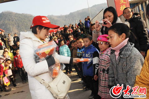 本報1月29日北川訊1月29日上午九時三十分,大眾報業集團新聞志愿服務隊來到位于北川縣擂鼓鎮的擂鼓中心小學進行慰問。新聞志愿服務隊成員向擂鼓中心小學的學生們發放了文具和生活用品等,同時志愿者還和部分學生、老師們進行了互動與交流。
