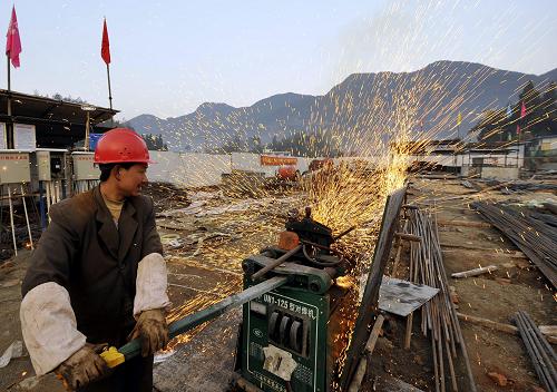 一名工人在山東淄博援建的北川縣香泉鄉小學工地加工鋼筋(1月13日攝)。新華社記者朱崢攝