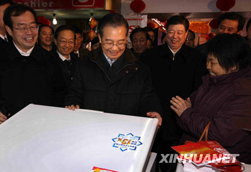 這是1月2日,溫家寶來到去年初被確定為家電下鄉銷售網點的即墨雅泰電器超市,了解“下鄉”家電的銷售情況。
