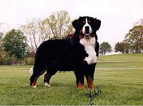 伯恩山犬是一種具有震撼力的品種。三色、長腿。他堅定而和諧。他很聰明、結(jié)實且靈活,在山區(qū)足以勝任象拖曳或趨趕畜群這樣的工作,這也是這一品種的起源。公狗顯得雄壯、母狗則顯得柔和。