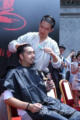 《黃飛鴻之英雄有夢》是時隔多年,華語影壇再一次重拍“黃飛鴻”題材。臺灣與內地的兩位新生代男演員彭于晏、井柏然組成的“紅火”組合能否超越一代經典,也成為了大家關注的焦點。探班現場,井柏然手拿剃刀,為導演周顯揚舉行削發儀式,剃發“明志”的導演表示要與演員們一起“光頭上陣”,井柏然連忙恭喜導演加入了“光頭帥哥”的行列。