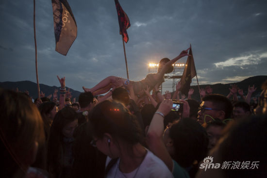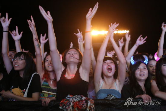 傍晚,木瑪&Third Party樂隊(duì)用最大汗淋漓的音樂和舞步撼動(dòng)了全場樂迷,主唱木瑪從臺(tái)上跳到臺(tái)下,前排女樂迷們的瘋狂尖。