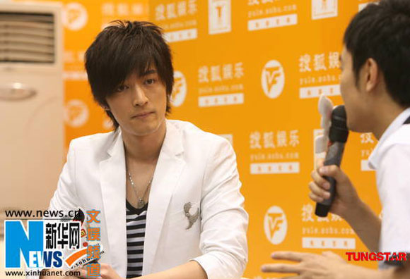 胡歌認真聽主持人提問。(新華網/圖)