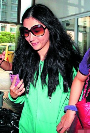 戴上墨鏡的張柏芝,前日在寧波為電影《河東獅吼2》試造型后,于傍晚返回酒店。