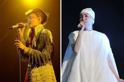 王菲身穿白色“浴袍裝”亮相,登場亮嗓便引全場尖叫。