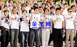 在港臺的“抗炎關懷日”上,歌手譚詠麟、劉德華、郭富城、許志安、李克勤、鄭秀文、張柏芝、容祖兒、盧巧音、梁詠琪、余文樂和DJ們齊齊做手勢,亮出手中的紅色心形圖案,合唱主題曲《香港心》。儀式完畢后,歌手們聯同200名義工組成“抗炎先鋒隊”到各小區派發抗炎包,并走訪零售業、公共交通業、食肆、清潔公司等地方,為各界人士打氣。在“四海是一家、抗炎一條心”的氛圍下,很多香港歌手不怕疲累,一天趕幾場,參與相關活動。他們更在口罩上畫上公仔,勉勵港人樂觀面對當前的困境。
