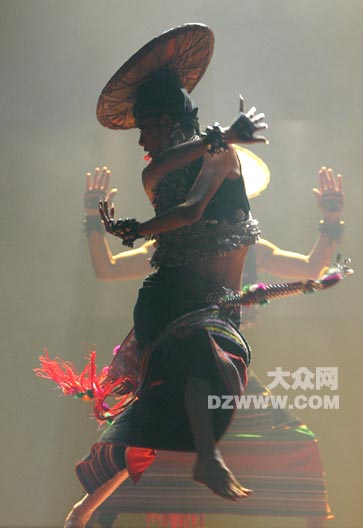 8月6日至8日,楊麗萍帶領她的舞蹈團在濟南山東會堂上演了大型原生態歌舞集《云南映象》,將云南地區的少數民族歌舞藝術帶給了泉城觀眾。第二場演出正是亞洲杯中國與日本決賽直播,但是依然沒有影響《云南映象》的上座率。本站特別整理了《云南映象》的歌舞圖片,使沒有觀看表演的人們一樣可以感受它的藝術氛圍。(攝影/楊博 制作/劉云)