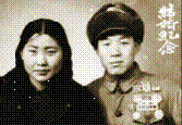 這張有點發黃的黑白結婚紀念照拍攝于1 955 年2 月份。照片上新郎袁永福身穿軍裝, 胸前戴著五枚軍功章。這種紅裝配武裝的照片當年是最讓年輕人羨慕的。當時,作為志愿軍的袁永福正在抗美援朝戰場,他已訂婚好幾年,此時已沒有戰事, 家里便催促他回家結婚,于是他請了一個月的假回家成親。