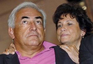 斯特勞斯-卡恩與妻子辛克萊(右)在一起