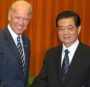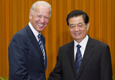 8月19日下午,中國國家主席胡錦濤在北京人民大會堂會見美國副總統拜登。拜登是應國家副主席習近平的邀請,于8月17日至22日對中國進行正式訪問。
