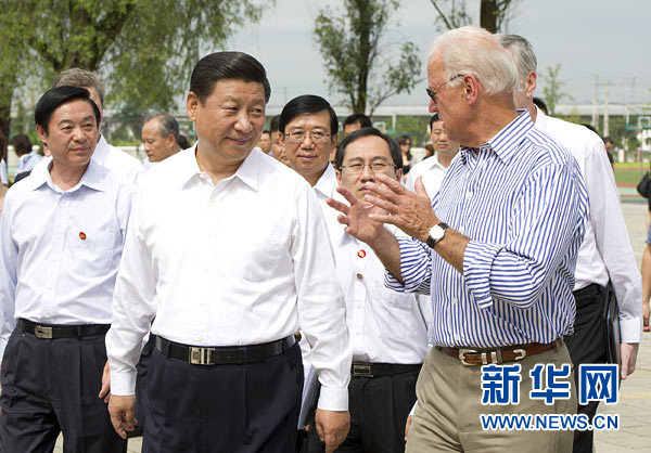 8月21日,中國國家副主席習(xí)近平同正在中國進(jìn)行正式訪問的美國副總統(tǒng)拜登在四川省都江堰市共同參觀地震災(zāi)后重建項(xiàng)目和都江堰水利樞紐。新華社記者黃敬文攝