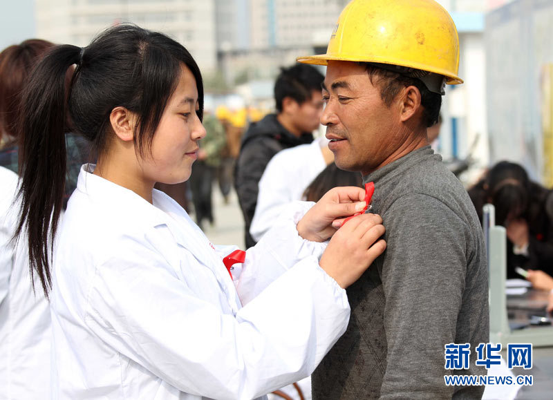 當日,南通大學衛生預防協會和“綠色方舟”社團聯合舉辦“艾滋病預防知識到工地”主題活動。綠色方舟社團的四十余名成員來到市內多個建筑工地,為工人開展預防艾滋病的相關宣傳活動。該活動是南通大學在12月1日“世界艾滋病日”到來之際開展的“社團助陣預防艾滋病宣傳”主題活動的一部分。 新華社發(黃哲 攝)