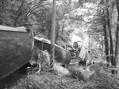 臺灣阿里山小火車翻車事故現場。新華社發