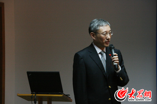 七年,對程林教授來說,意味著不斷的嘗試,不斷的探索,是一個只許成功不許失敗的過程。“山東大學的光榮和恥辱,在很大程度上還是中國的光榮或者是恥辱,有時候我自己也深感自己很有壓力。但是今天,當我有機會能和大家分享這一段難忘的生活經歷的時候,我也不知道我為什么會戴一個國徽。但是我認為它并沒有任何不恰當的地方。”程林教授輕輕撫摸著別在西裝上的國徽,微笑著,自豪之情溢于言表。