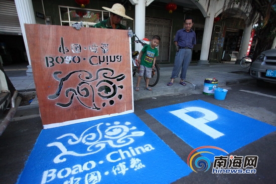 印有“博鰲”元素的停車位(南海網記者張茂攝)