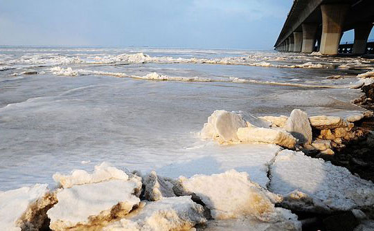 海灣大橋是我國冰凍海域的第一座跨海大橋,冰凍因素在建設時就已考慮在內。“在一些存在冰凍的河流都有很多大橋,每年都會冰凍,大橋則不會影響,冰凍不是什么威脅!笔┕と藛T說道。