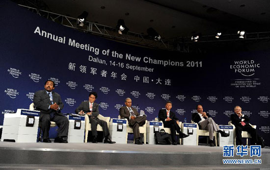 9月14日,世界經(jīng)濟論壇2011年新領(lǐng)軍者年會(第五屆夏季達沃斯論壇)舉行“變革性創(chuàng)新”專題會議。 新華社記者 李鋼攝