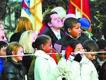 在歡迎胡錦濤的人群中還有一些來(lái)自華盛頓的學(xué)習(xí)中文的美國(guó)小朋友,他們齊聲用中文說(shuō):“歡迎胡爺爺。”