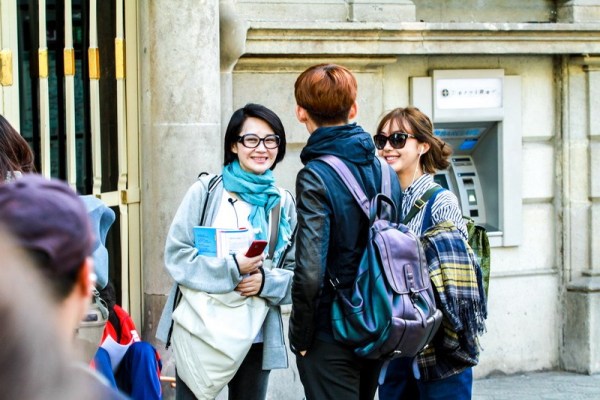 輪值導游耐心向路人咨詢目的地