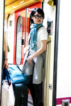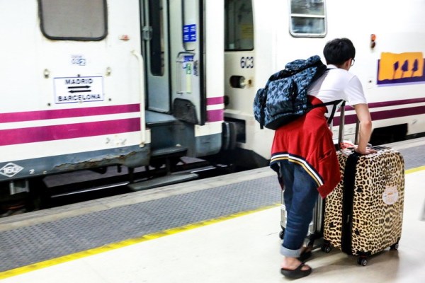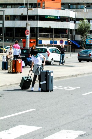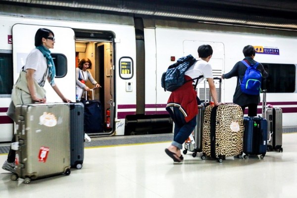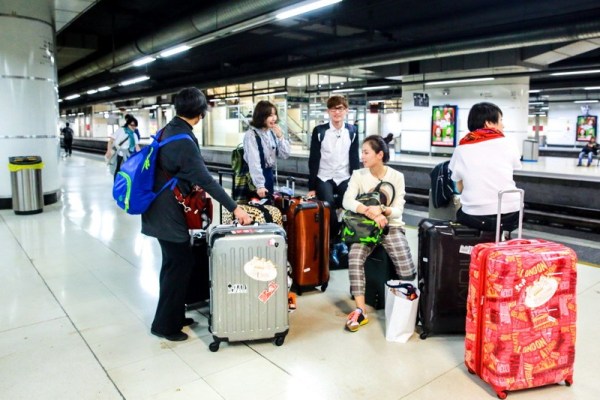 即將轉場去馬德里,佩佩姐一馬當先拿行李進火車站