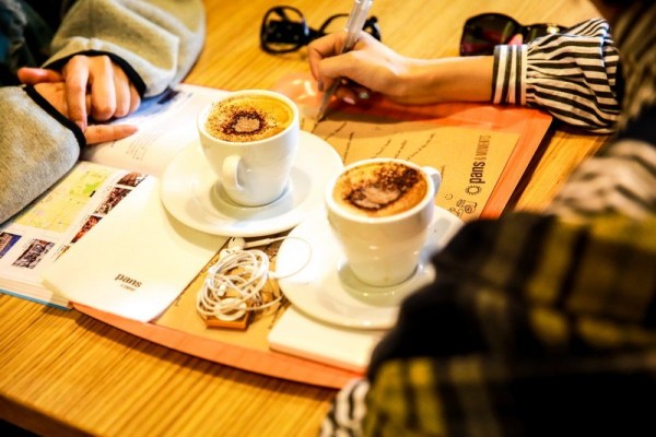 喝咖啡都沒忘記要把行程安排好