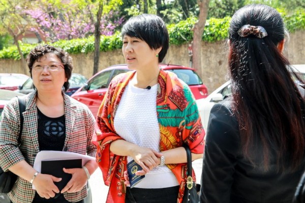 中國駐巴塞羅那總領館的工作人員跟凱麗姐在溝通