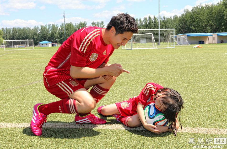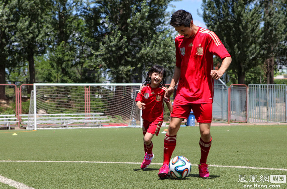 田亮帶女兒踢足球助陣世界杯 “女漢子”森蝶開啟奔跑模式[高清大圖]