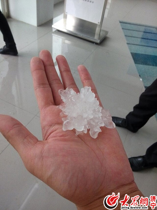濟寧新聞:今日下午4點30分至5點左右,濟寧高新區(qū)、兗州區(qū)、曲阜等地突遭暴雨冰雹襲擊,大的冰雹狀如核桃,持續(xù)近30分鐘。