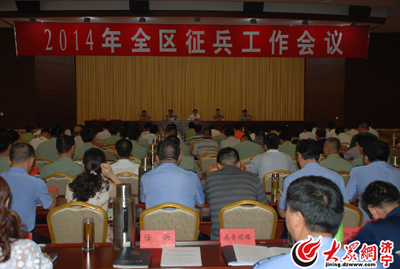 大眾網濟寧6月28日訊(記者 曹麗 通訊員 王海峰)27日,濟寧市任城區召開2014年全區征兵工作會議。區委常委、副區長范德元,區人武部部長、征兵辦公室主任溫明強,區委常委、區人武部政委崔兆收, 區人武部副部長兼軍事科長孔德軍,區人武部副部長呂品出席會議。會議學習了《2014年度征兵主要政策規定》、《廉潔征兵若干規定》和《山東省廉潔征兵工作獎懲實施細則》,征兵工作領導小組與公安、衛生、教育等部門和基層各鄉鎮、街道簽立廉潔征兵責任書。會議還表彰了2013年度全區征兵工作先進單位和先進個人。