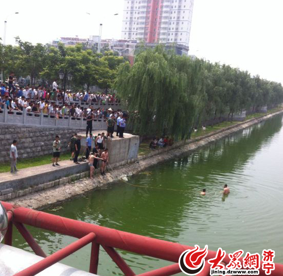 濟寧新聞:7月2日中午,在濟寧市區龍行路良友橋老運河上,一輛轎車突然失控墜入河中,一場消防官兵與市民聯手救援墜河轎車的生死大營救在老運河上展開。