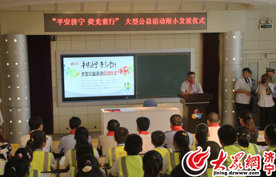 6月27日,“平安濟寧 熒光童行”大型公益活動在濟寧任城區實驗小學啟動,首批發放3000余件熒光衣。啟動儀式后,濟寧“熒光童行”公益活動正在分階段、分區域進行。力爭在2015年4月前,將愛心熒光衣發放到濟寧城區每一位小學生手中,2015年12月底前,發放范圍覆蓋到農村小學生。
