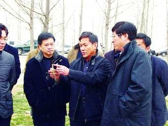 ▲菏澤市農業局首席農業專家閆傳勝在介紹小麥長勢。 黃體軍 王連建 攝