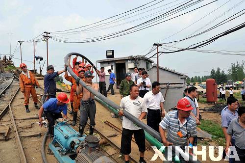 新華網山東頻道7月11日電(記者劉寶森、席敏)據山東濰坊坊子區透水鐵礦救援人員介紹,經過現場調查了解,目前初步判斷礦井附近一個積水石坑塌陷導致這次礦井透水事故。