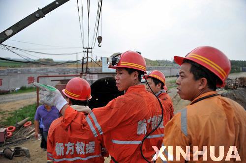 7月11日,救援人員在事發礦井口待命。新華社記者 朱崢 攝