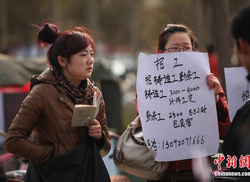11日上午,濟南市2011年首場“春風行動”專場招聘會在濟南市人力資源市場舉行,78...